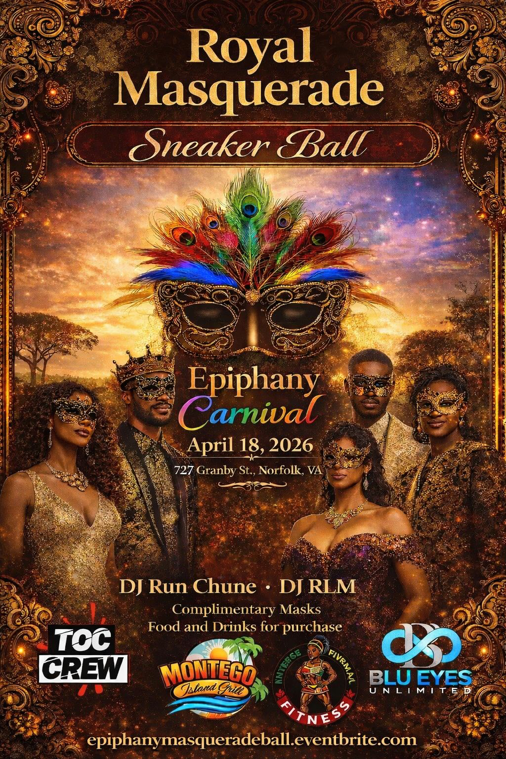 Royal Masquerade Sneaker Ball Saturday, April 18, 2026 8:00 PM Sunday, April 19, 2026 12:00 AM Granby St Glow Juice Bar 727 Granby Street Norfolk, VA, 23510 United States (map) Google Calendar ICS Click For Tickets
