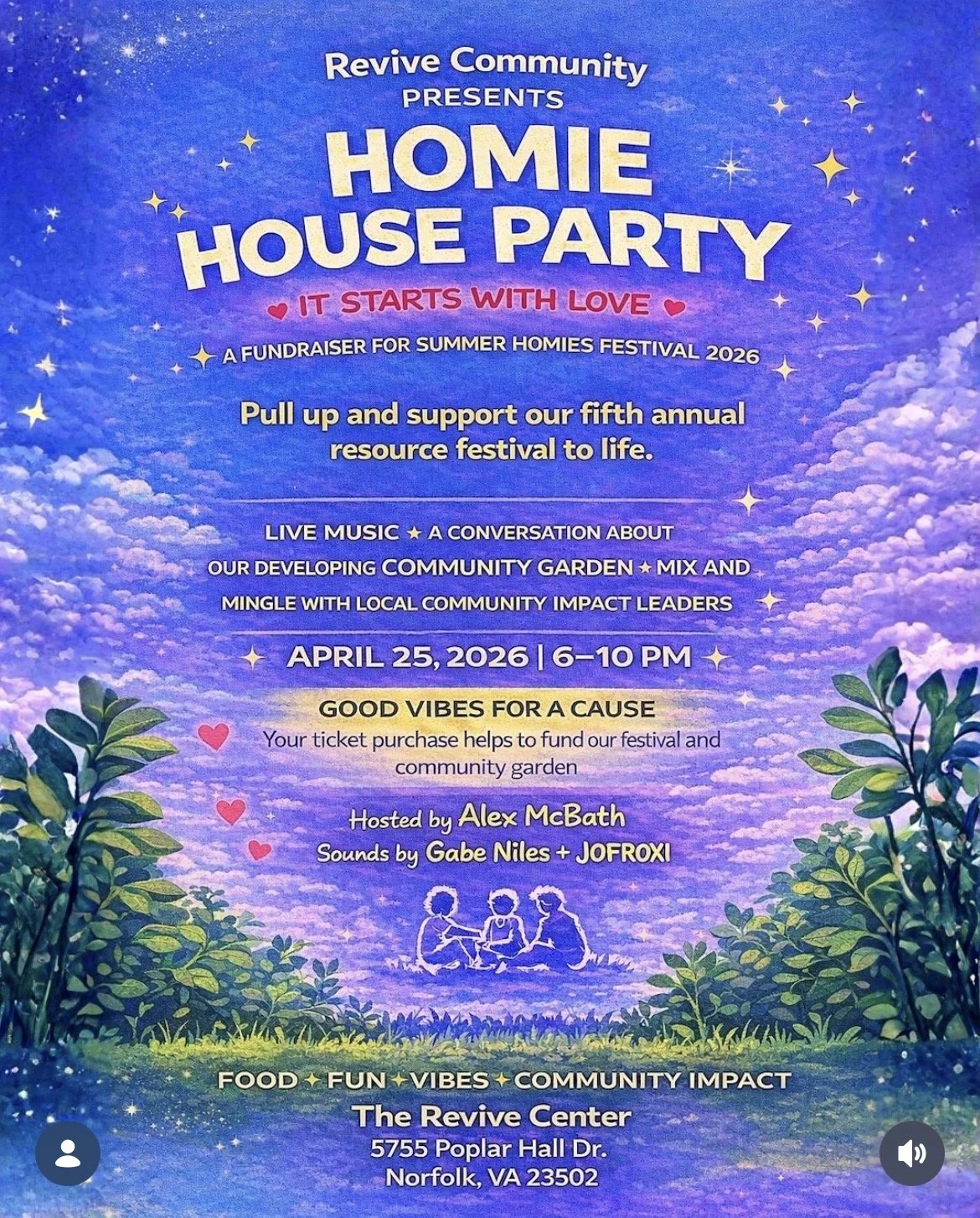 Back to All Events Homie House Party Saturday, April 25, 2026 6:00 PM 10:00 PM The Revive Center 5755 Poplar Hall Drive Norfolk, VA, 23502 United States (map) Google Calendar ICS Click Here For Tickets